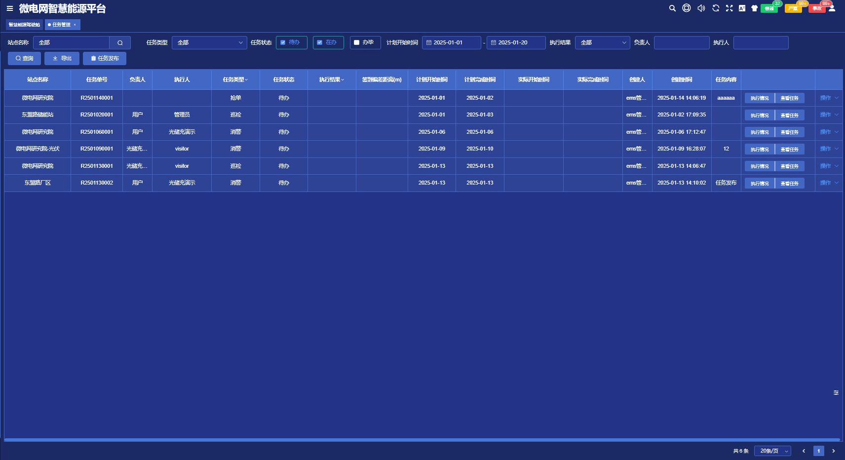 全景监测与可视化:实时采集并展示变电站、光伏、储能、负荷、充电桩及环境数据,支持异常告警、事件查询与统计报表,实现能源系统透明化管理。