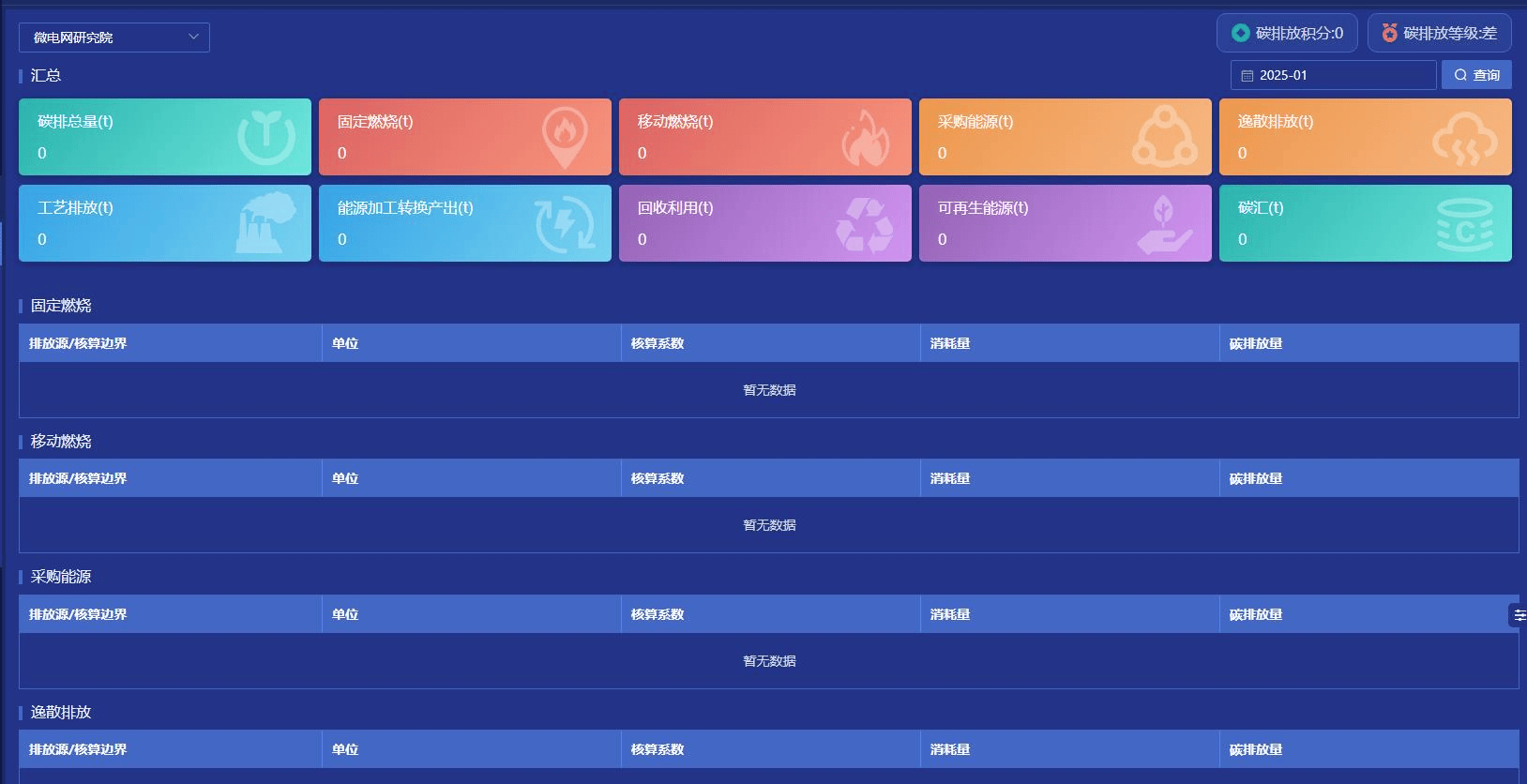 碳资产管理与排放跟踪:提供企业碳盘查清册、碳配额管理、碳排放分析、碳流向追踪、碳盘查报告及碳交易记录等功能,助力碳排放准确核算与交易准备。